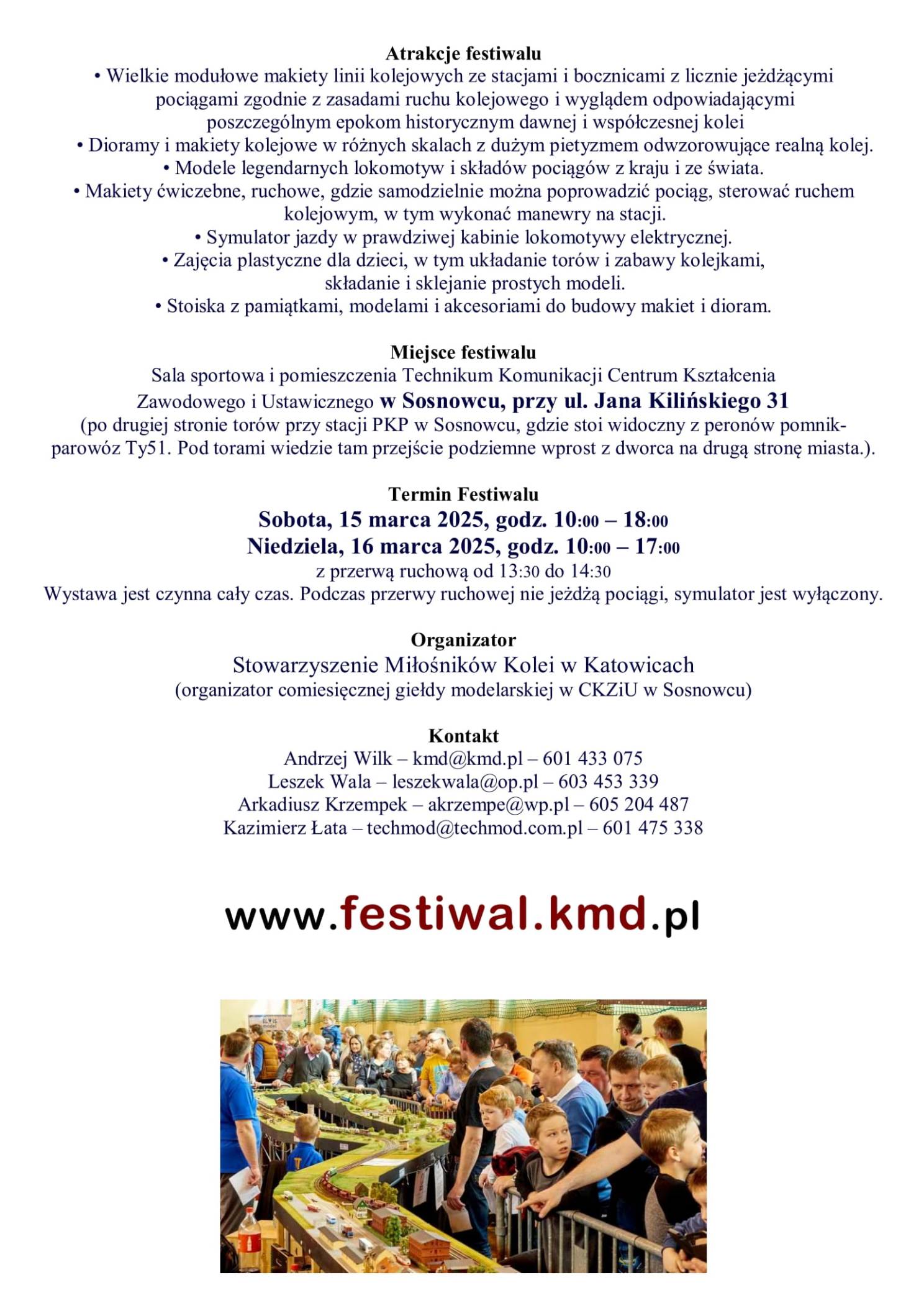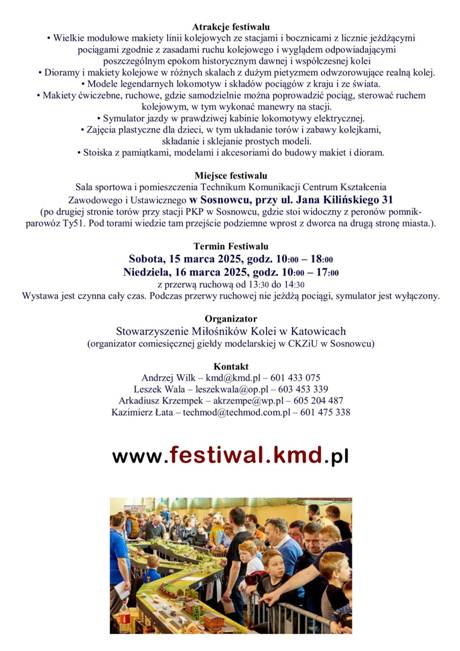 Również podobnie, jak w latach poprzednich, namiastka Festiwalu – makieta kolejowa będzie jedną z atrakcji podczas Dnia Otwartego Tramwajów Śląskich, który w 2025 roku odbędzie się 20 września w Zajezdni Tramwajowej w Chorzowie.DB Cargo Polska S.A.jest także stałym partnerem wydarzenia Festiwal „KOLEJ W MINIATURZE”. Na jego firmowym stoisku można było odbyć wirtualną podróż (w Goglach Rzeczywistości Rozszerzonej VR) po fantastycznym, kolejowym świecie DB Cargo.